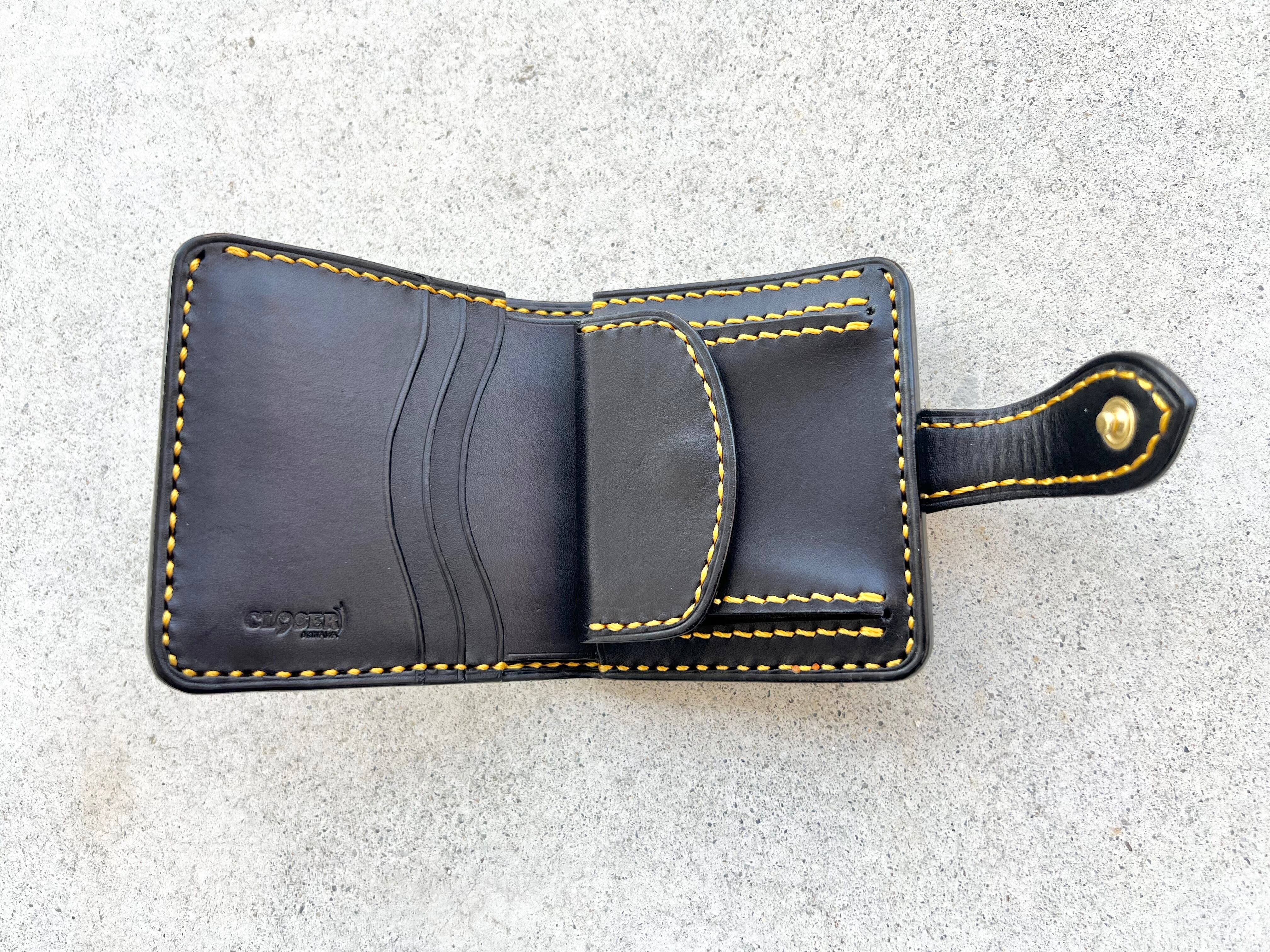 二つ折りショート財布 Kuni 読谷花織仕様 ブラック