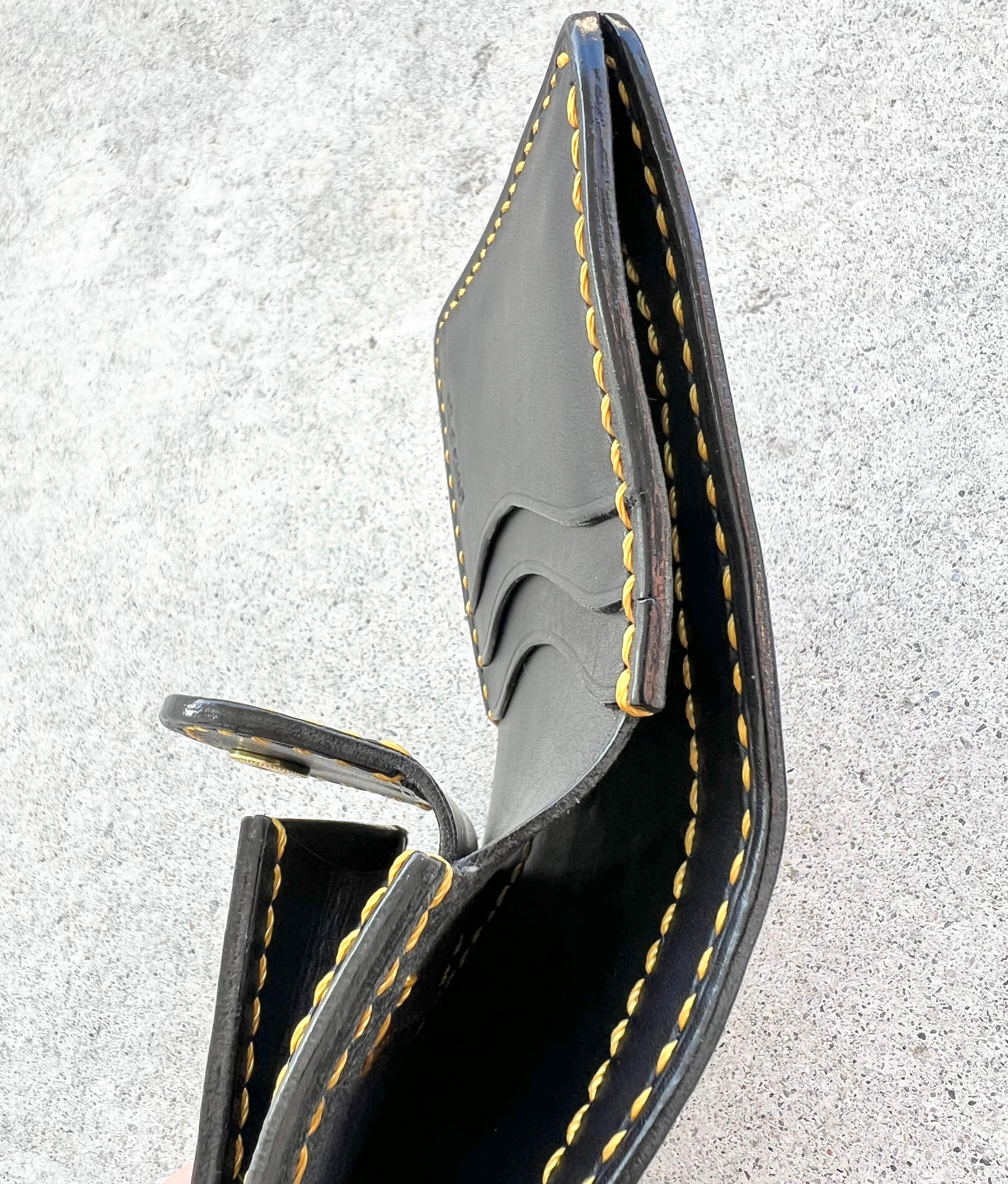 仕上げ コバ(革の断面)は綺麗に整え、数種類のヤスリがけをし、磨き上げ、保護剤を付け仕上がります。
