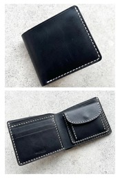 二つ折りのサイフ シンプル イタリアレザー (留め具無しタイプ) ブラック