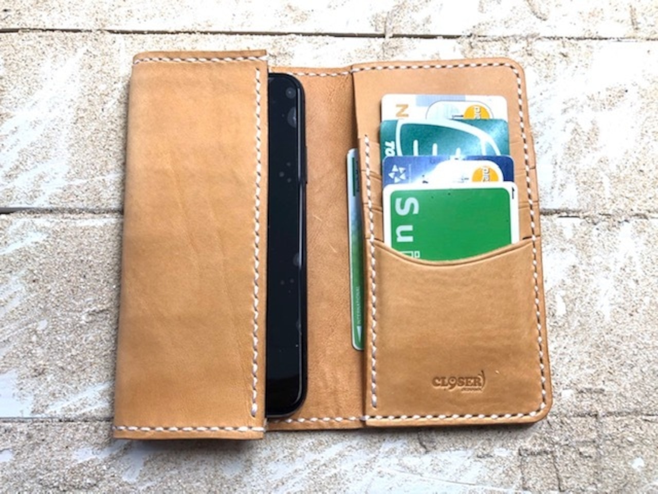 従来の手帳型ケースとは異なりiphone本体を素早く出し入れ出来き、すぐに収納