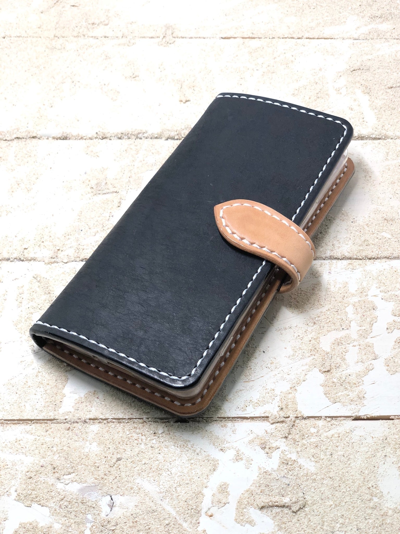 iPhone&android スマホケース 手帳型 ナチュラル×ブラック