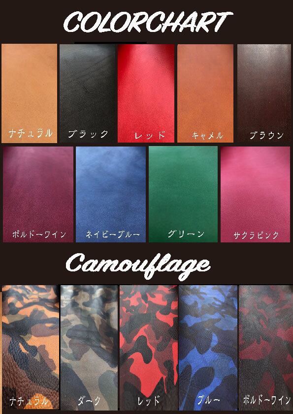(カモフラレザーのレッド、ブルー、ワインは表革のみです。)